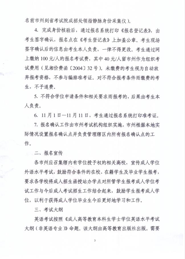 11、试卷由省内统一组织评阅,成绩于本学期末或下学期初公布,我校学生(包含在它市州区确认参考的我校学生)届时可关注本院官网的通知公告栏目(http://jxjy.csuft.edu.cn)或湘教考成字[2018]2号文件内的查询网址。
