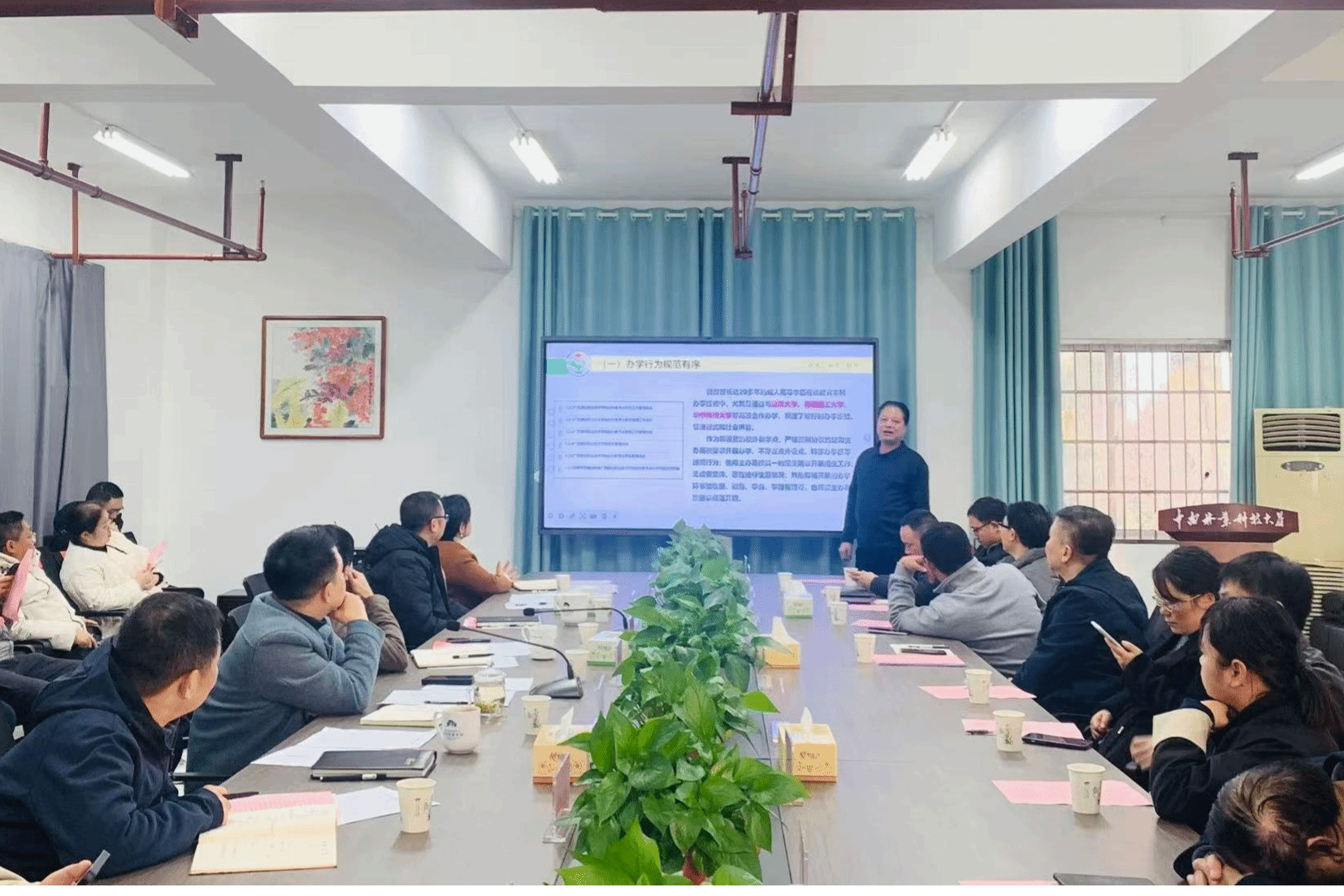 1月8日下午,学院2025年第四季度校外教学点联席会议在体育东看台301会议室召开。学院班子成员、各科室负责人及广西建设职业技术学院等13个校外教学点负责人、教学管理骨干参加,会议由党总支书记张亮主持。