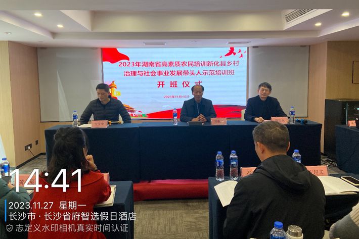 11月27日下午,2023年湖南省高素质农民培育新化县乡村治理与社会事业发展带头人培训班在我校培训中心顺利开班。来自新化县基层的70名村干部及负责人参加本次培训。
