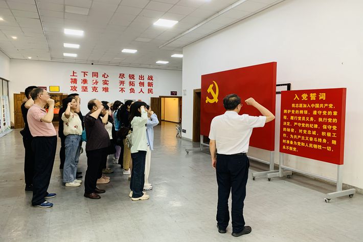 在参观脱贫展览馆,了解十八洞村脱贫全过程后,全体党员在党总支书记童显德的带领下重温入党誓词,牢记身为一名共产党员的初心使命。