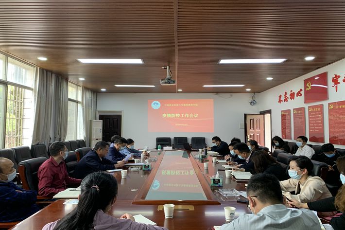3月14日上午10:30分,继续教育学院在知行楼201召开疫情防控工作会议,全体院领导、学院处级干部、各部门负责人、潇湘、政法负责人参加会议。会议由党总支书记吴锦波主持。