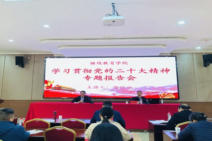 周预分从党的二十大召开的时代背景及重大历史意义、党的二十大报告的核心要义、全面推进学校继续教育事业创新发展等三个方面对党的二十大精神进行了深入解读,并联系继续教育实际,对学校继续教育事业提出了四点建议,一是强化党建引领;二是明确目标任务;三是聚焦重点特色;四是创新融合发展。