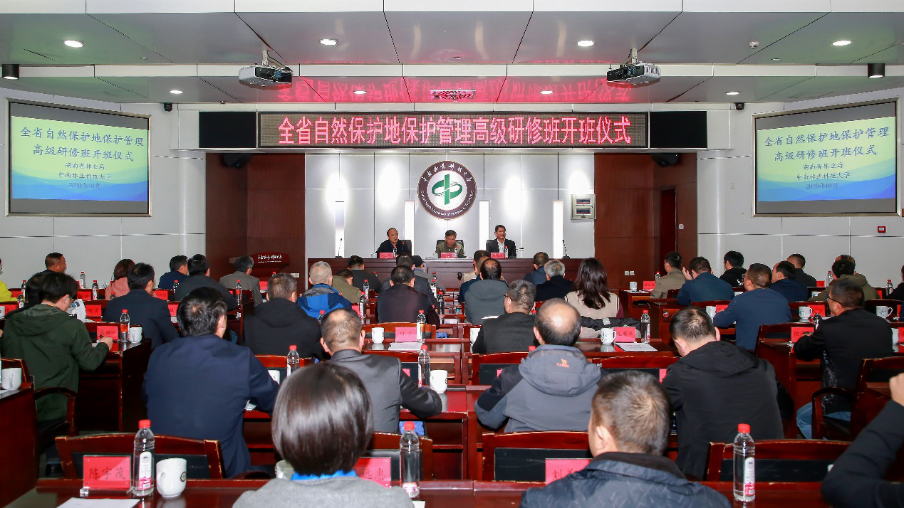 10月19日上午,湖南省自然保护地保护管理高级研修班在我校崇德楼四楼会议室开班。湖南省林业局自然保护地管理处副处长徐永新、继续教育学院(企业管理干部培训中心)党总支书记吴锦波、副书记陈安锋出席了开班仪式。