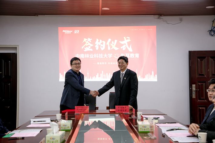 仪式上,陈冬林代表学校与长沙市岳麓区牛耳职业技能培训学校有限责任公司、湖南研成教育科技有限公司、上海高顿教育培训有限公司、长沙问学出国事务有限公司湖南齐创教育文化发展有限公司厦门市聚英教育集团有限公司湖南华科教育科技有限公司、长沙实验外国语专修学院8家合作单位现场签约。