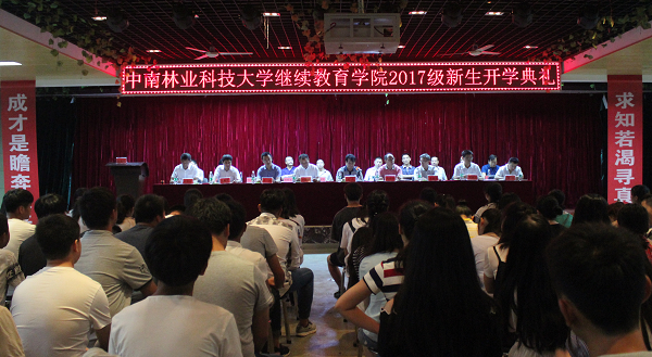 8月30日上午,中南林业科技大学继续教育学院2017级新生开学典礼在学生活动中心隆重举行。参加开学典礼的有2017级新生、家长代表、学院及校企合作部的全体员工共800多人。学校党委委员副校长刘元教授,教育考试院周畅根副院长、自考处朱天视处长、成招及研招处谢培元处长、成招及研招处张嘉华副处长,学校教务处邓联健处长和学生工作部李建兵部长、团委李凯书记,湖南潇湘软件教育科技有限公司董事长周义先,湖南政法专修学院董事长兼院长陈强,继续教育学院刘梦飞院长及全体领导出席了开学典礼,商学院硕士生导师陈爱吾教授作为教师代表参加了开学典礼并发言。开学典礼由院党总支书记书记吴锦波主持。