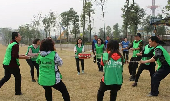 素质拓展活动中,通过“破冰分组”将全院职工分为四队,每位员工积极投入“毛毛虫竞速”、“鼓动人心”、“珠行千里”等项目,相互配合、齐心协力地完成所有挑战。
