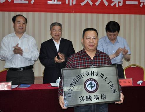 仪式上“山东省淄川区农村实用人才培训实践基地”在培训楼揭牌成立。